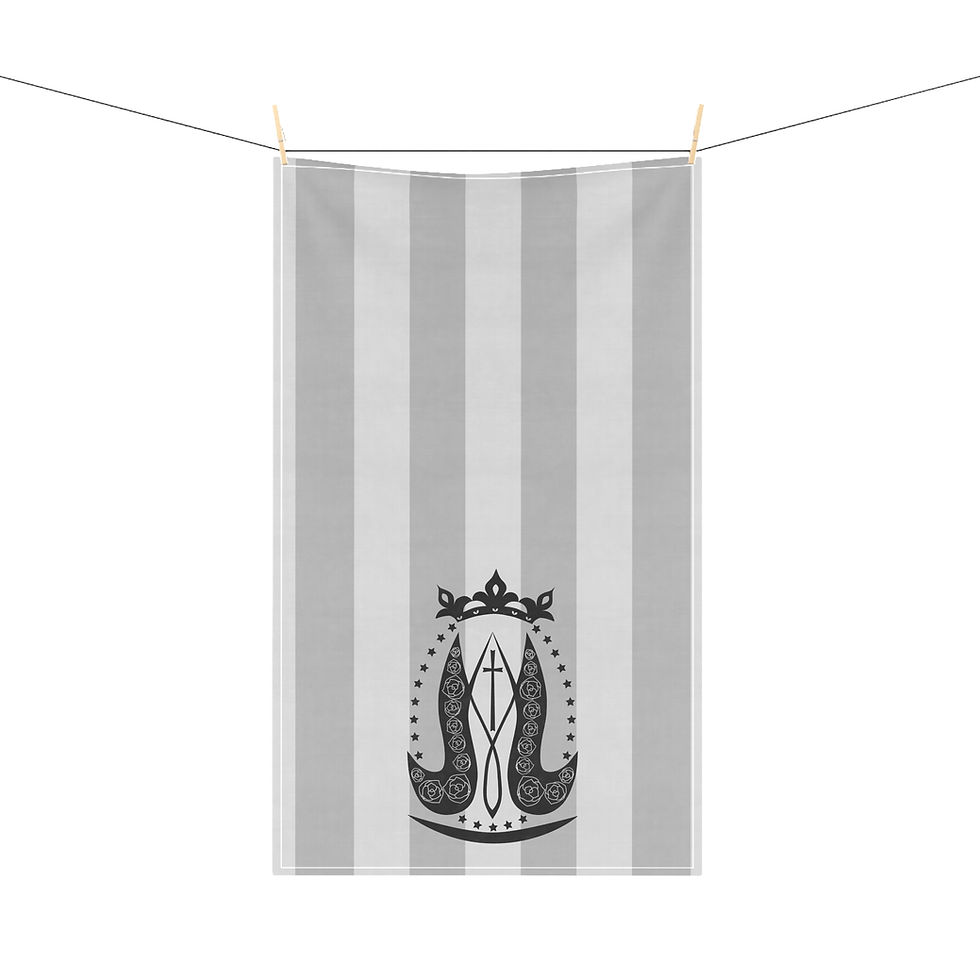 Mariam Crowned Initial Striped Tea Towel — Monogrammed Elegant Kitchen Towel